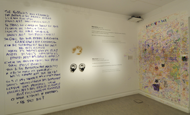 The resulting exhibition was a mix of poetry, text, artwork, photos, animation and video installation. There was much more than can be shown here. All quotes are taken from the Visitors' Book.