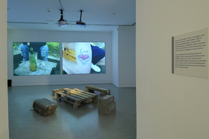 In room 3 where the video-installation was played, Magi and Anthony re-created a den of the type used by many youngsters on the edge of society.